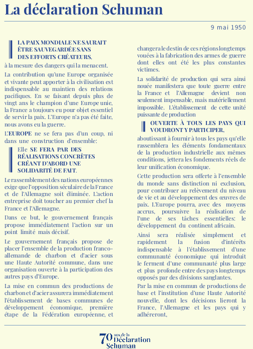 1950-2020 : 70ème anniversaire de la déclaration Schuman