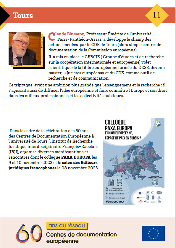 Salon des éditeurs juridiques francophones, colloque sur la paix « Paxa Europa », remise de prix de thèse « Spécial 60 ans des CDE », programmation cinématographique de films sur la paix, conférences…