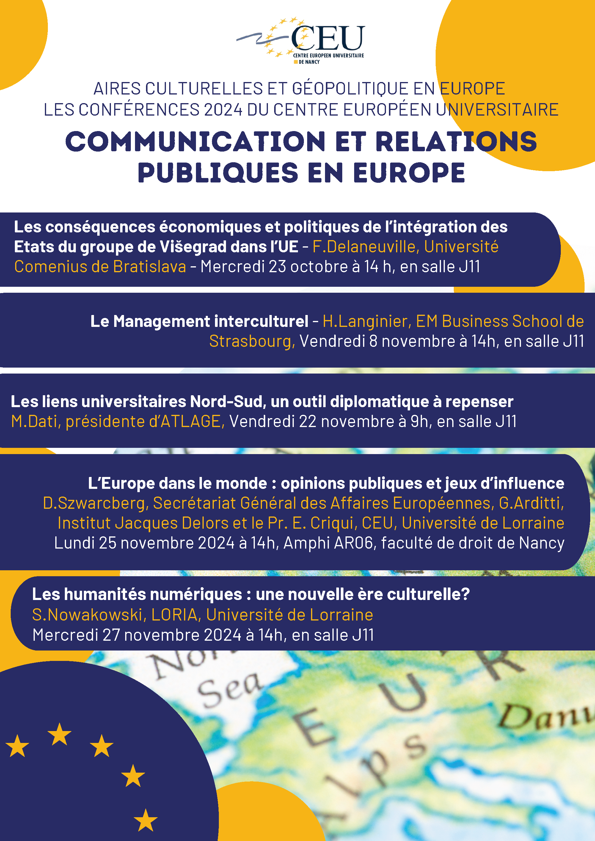 Ces conférences sont organisées par le parcours communication et relations publiques en Europe (sous la responsabilité de Tourya Guaaybess).