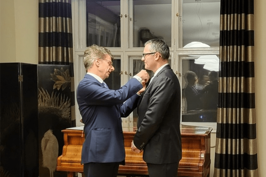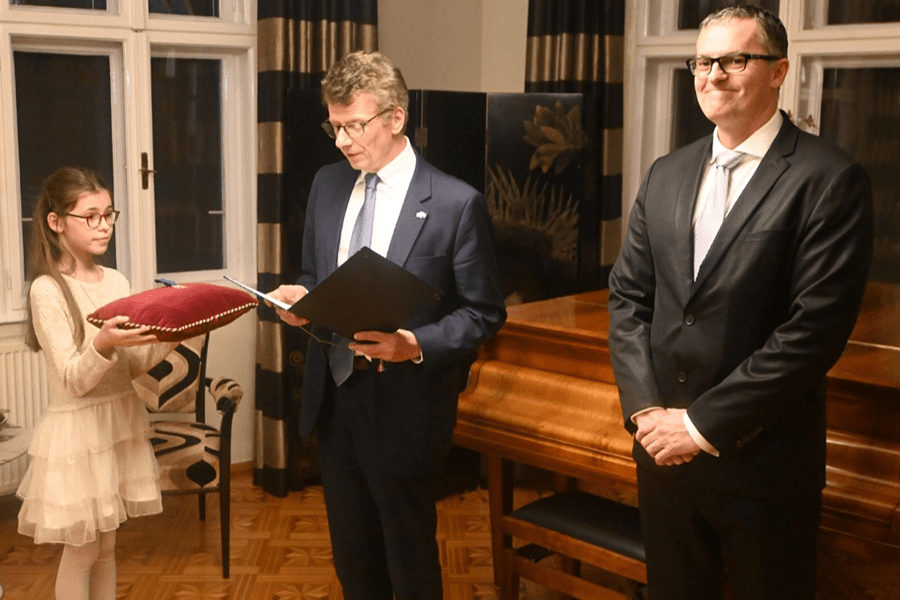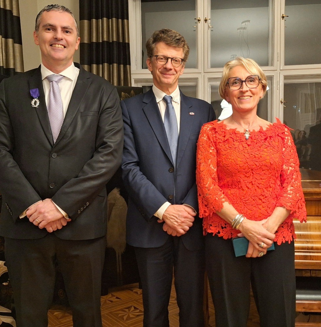 Frédéric Delaneuville, enseignant-chercheur à l’Université Comenius de Bratislava et responsable du programme français au département de Management international, a été décoré dans l’ordre des chevaliers des Palmes académiques, lors d’une cérémonie à la Résidence de France par l’ambassadeur, M. Nicolas Suran.