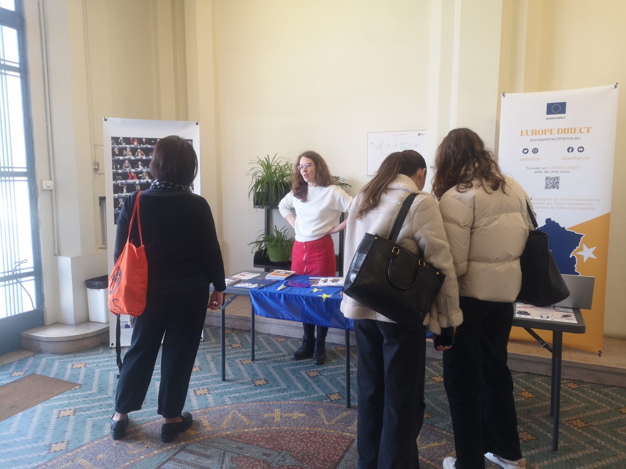 Plus de 80 visiteurs ont répondu à un quiz sur les élections européennes, consulté les fiches des réalisations du mandat 2019-2024 de la Commission européenne, et découvert une exposition sur le Parlement européen.