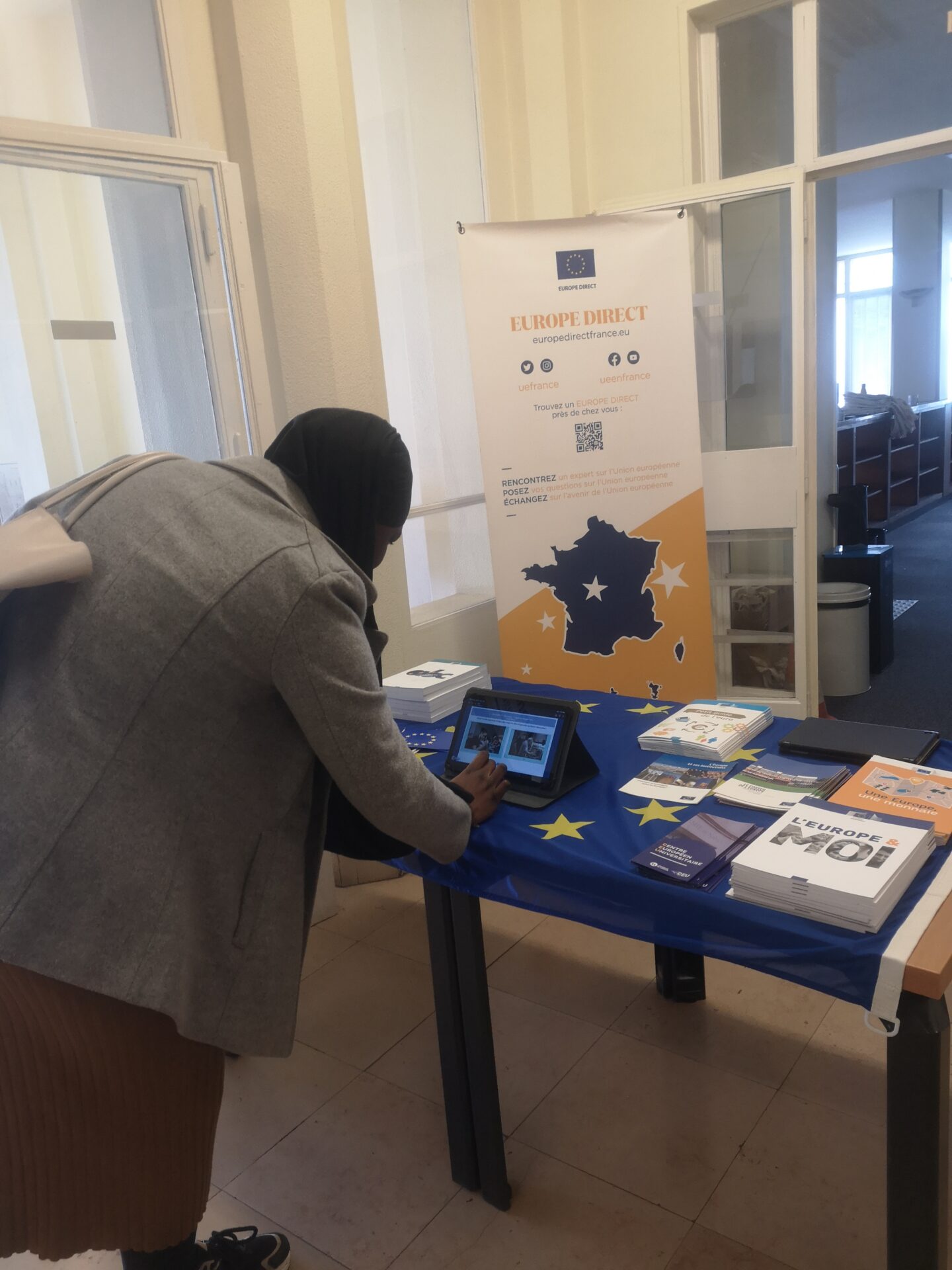 Les participants ont pu découvrir l’exposition « Belles histoires » de l’ANCT – Agence nationale de la cohésion des territoires, répondre au quiz concocté par les documentalistes CDE/BUD et discuter avec Elisabeth sur son parcours de volontaire européenne.