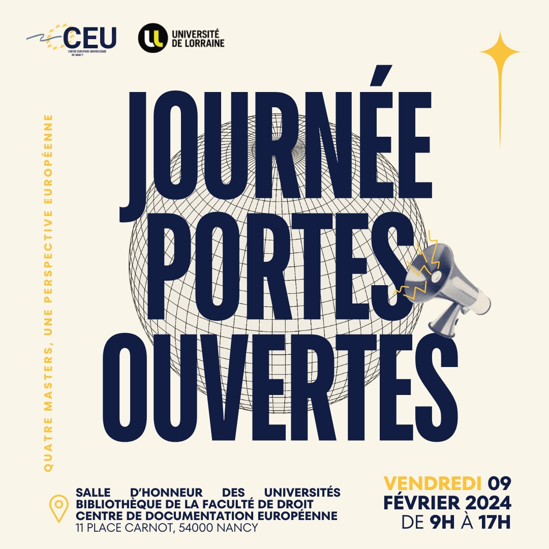 Le Centre Européen Universitaire vous ouvre ses portes le vendredi 9 février 2024 de 9h à 17h ! Venez découvrir les opportunités et les enseignements que le CEU a à vous offrir !