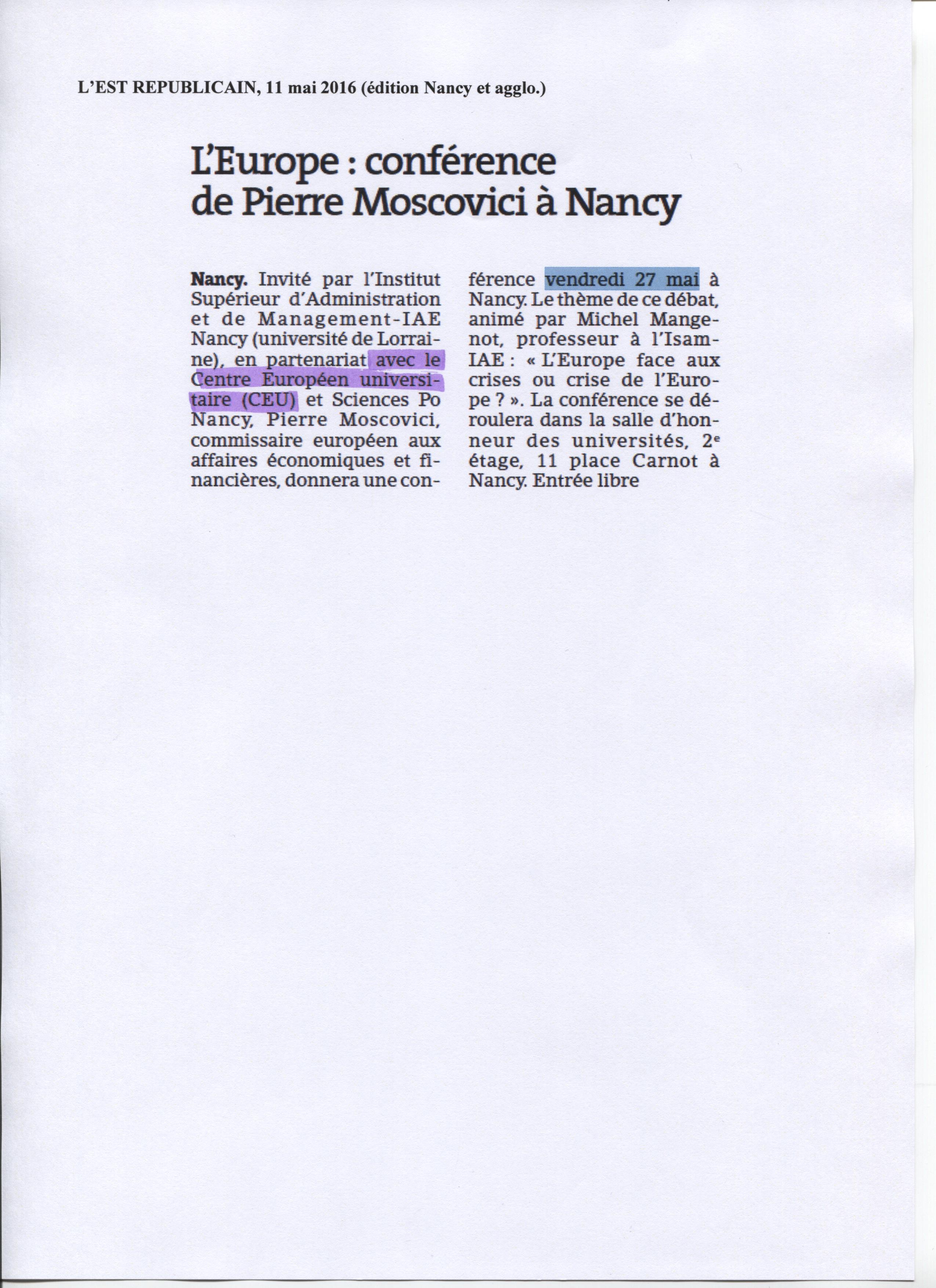 L’Europe : conférence de Pierre Moscovici à Nancy