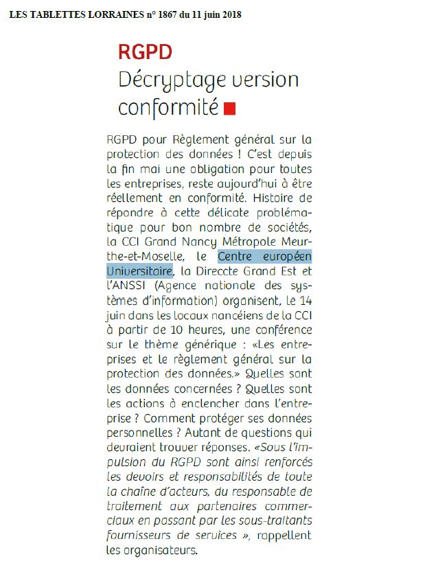 RGPD. Décryptage version conformité dans les Tablettes Lorraines