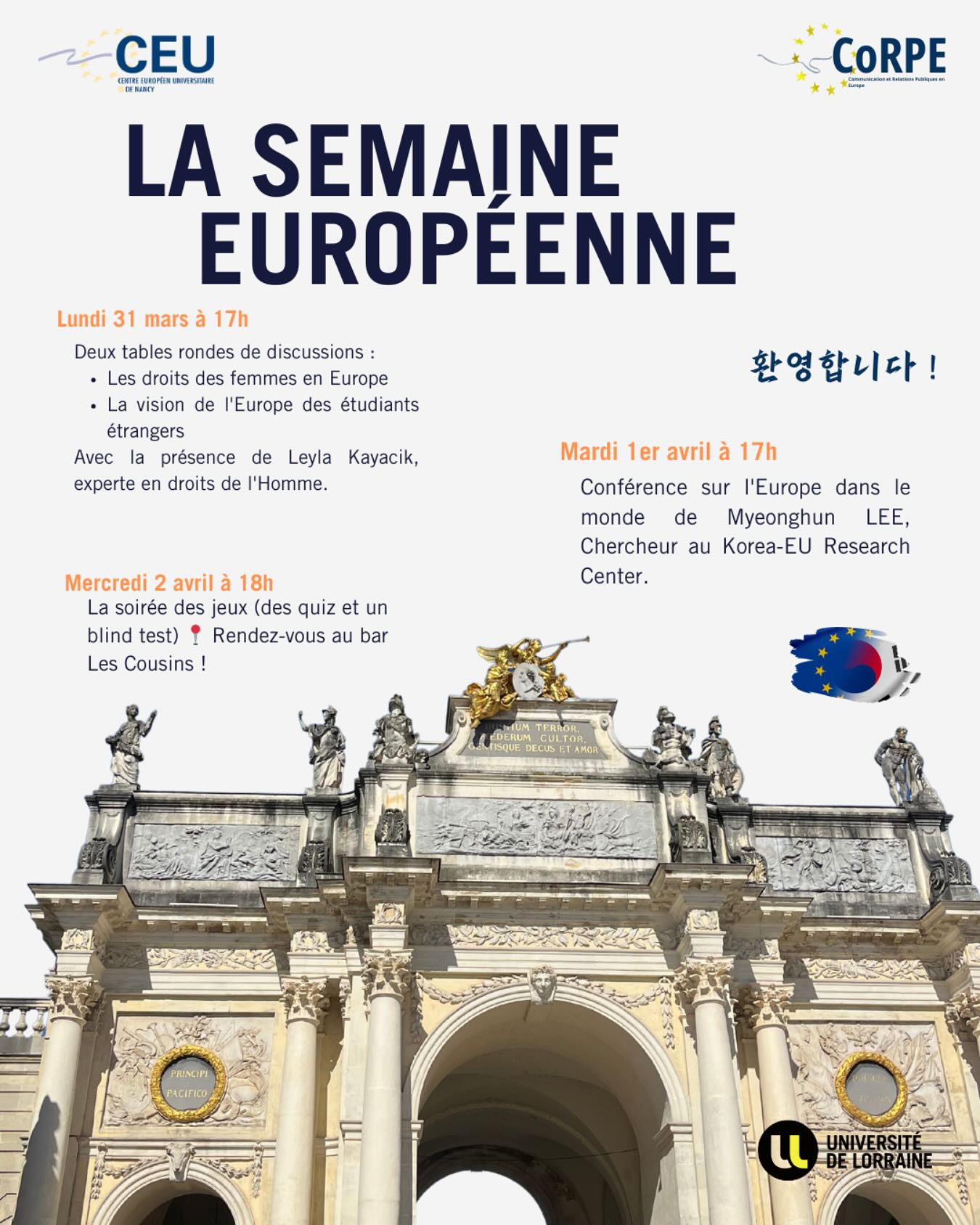 Les étudiants du CEU en parcours communication vous invitent à une semaine européenne du 31 mars au 2 avril 2025.