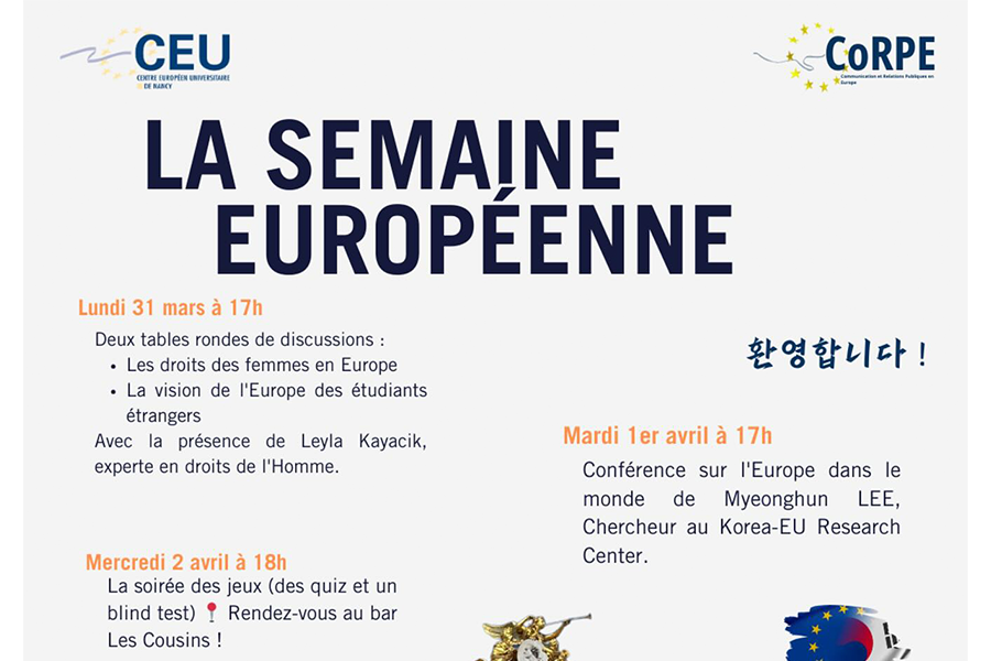 Les étudiants du CEU en parcours communication vous invitent à une semaine européenne du 31 mars au 2 avril 2025.