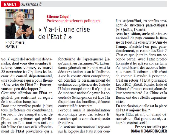 Y a-t-il une crise de l’État?